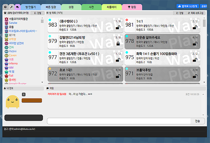 끄투온라인 끝말잇기 게임하기